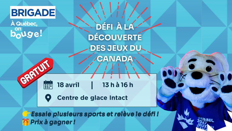 Le Défi à la découverte des Jeux du Canada est une activité gratuite et familiale, pensée surtout pour les jeunes familles. L’événement prendra la forme d’une après-midi de découverte sportive. Les participants pourront circuler entre plusieurs kiosques animés par des organismes sportifs, s’initier à différentes disciplines des Jeux du Canada, relever des défis à l’aide d’un passeport à faire étamper et courir la chance de gagner des prix.