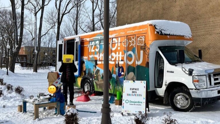 Un matin d'animation pour les familles de 0-5 ans avec le mini-bus 1,2,3 Limoilou! Chocolat chaud pour tous et gratuité des équipements toute la journée jusqu'à 16h30 au Chalet Lacroix!
