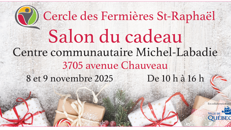 Le Cercle de Fermières Saint-Raphaël vous invite à son Salon du Cadeau, un marché de Noël chaleureux et authentique. Découvrez une variété d’articles faits main, parfaits pour vos cadeaux des Fêtes. L’occasion idéale de soutenir l’artisanat local et de trouver des créations uniques.