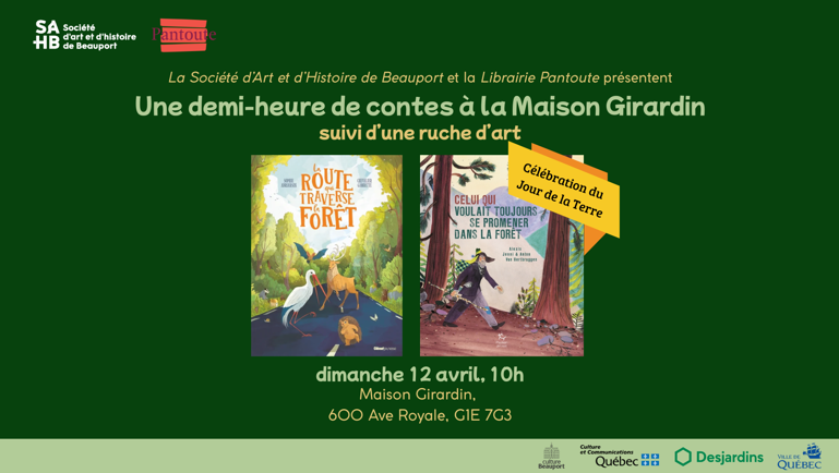 La Société d’Art et d’Histoire de Beauport et la Librairie Pantoute se sont affiliés pour vous offrir une demi-heure de contes! Suivant la lecture, les enfants seront amenés à créer grâce à notre ruche d’art. Du matériel sera mis à votre disposition à cet effet.