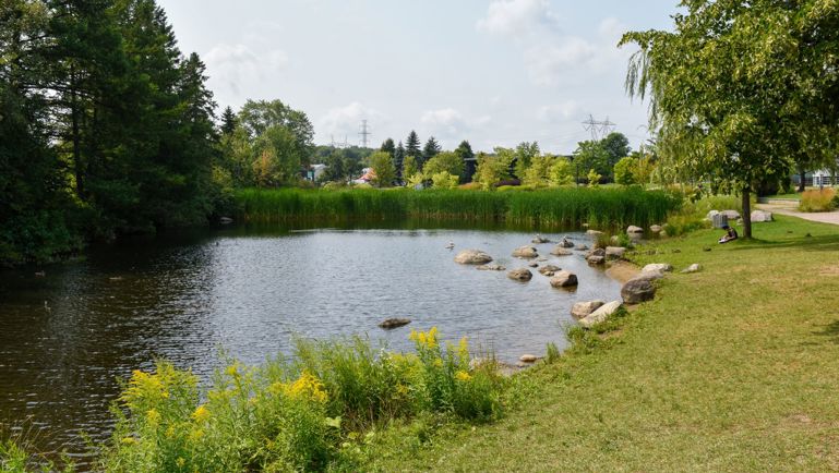 - Vous devez stationner votre véhicule près de la bibliothèque et traverser une zone gazonnée puis une zone en poussière de pierre devant la scène.